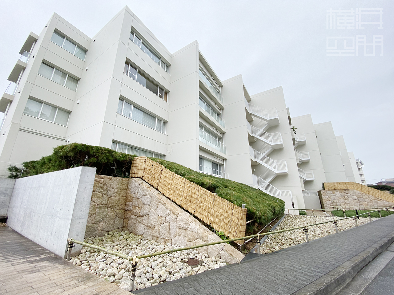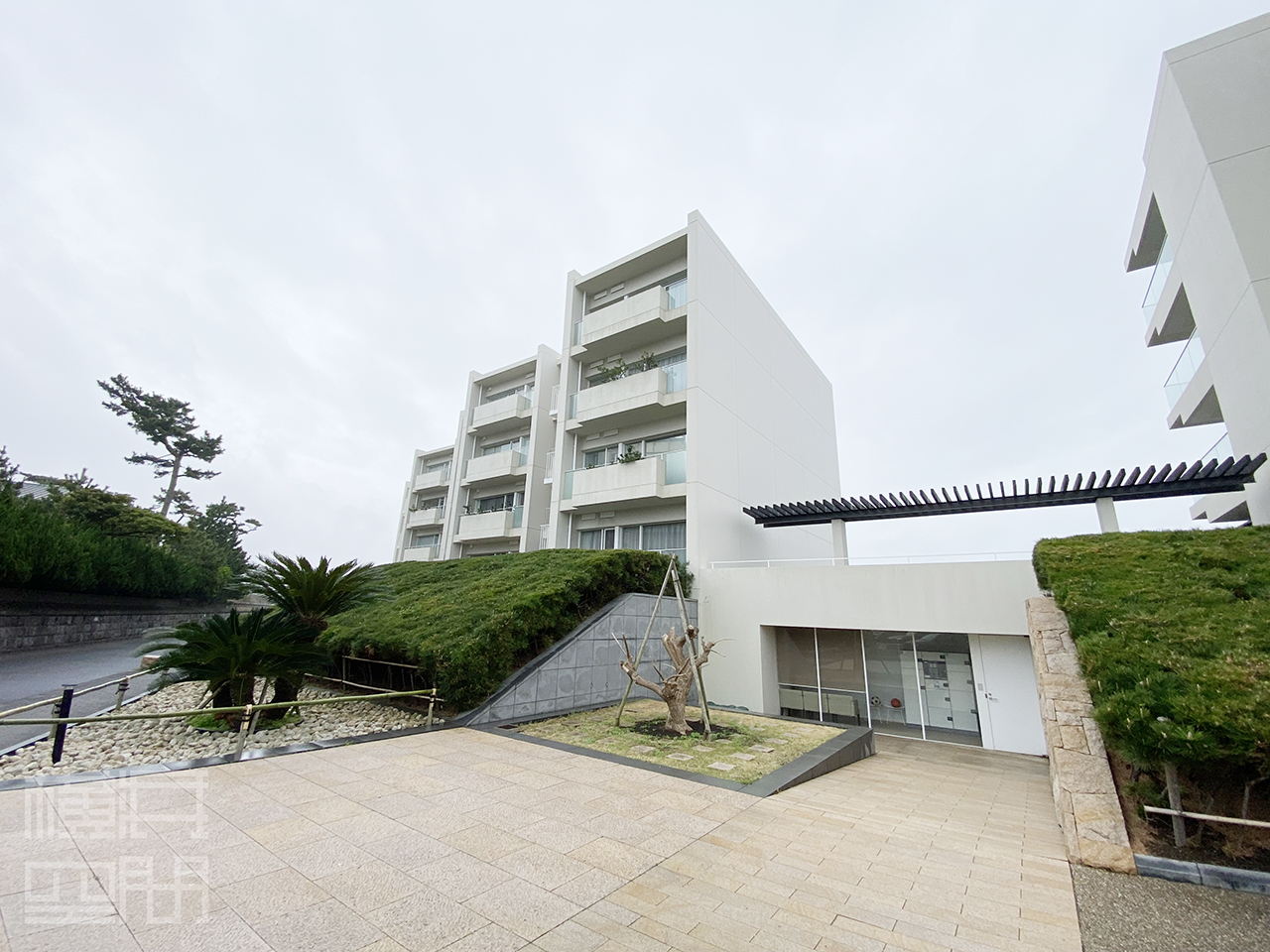 神奈川有数の避暑地・葉山の岬に建てられた、地下1階地上4階建・総戸数34戸の低層マンション。