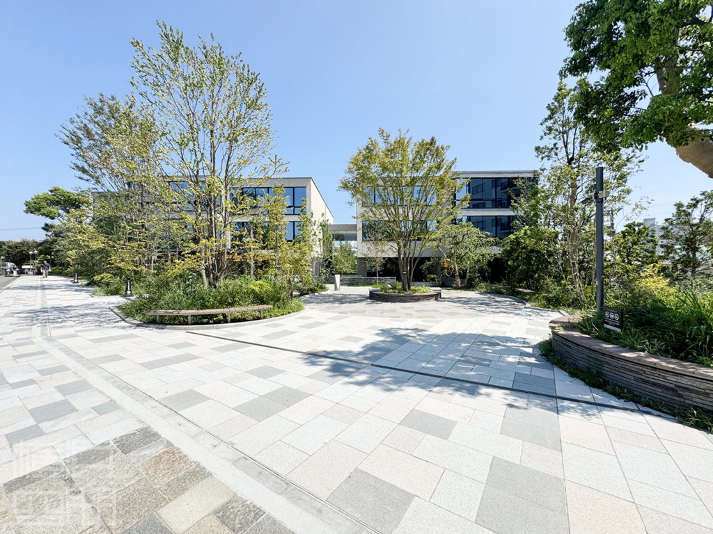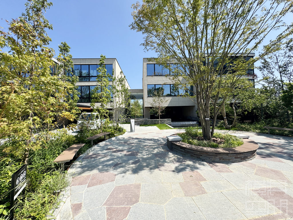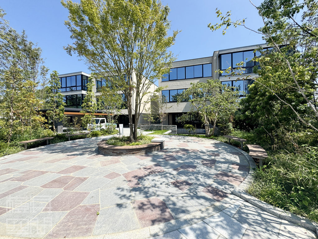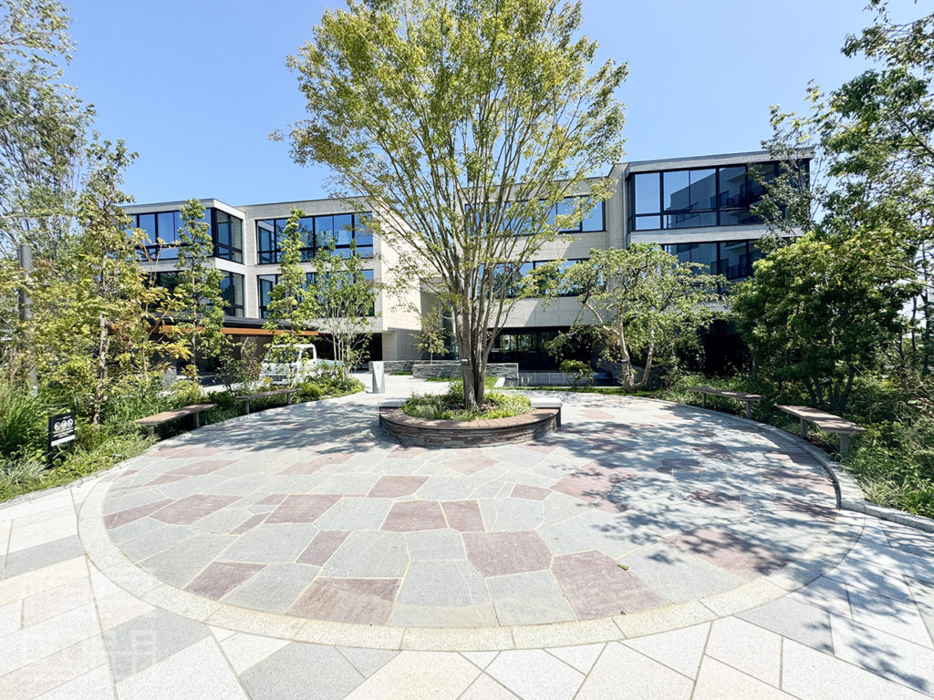 四季を映す前庭が訪れる者を出迎え、ゆとりある広場とアプローチが街並みに潤いを添える。