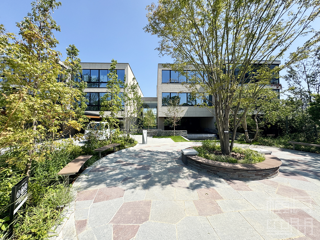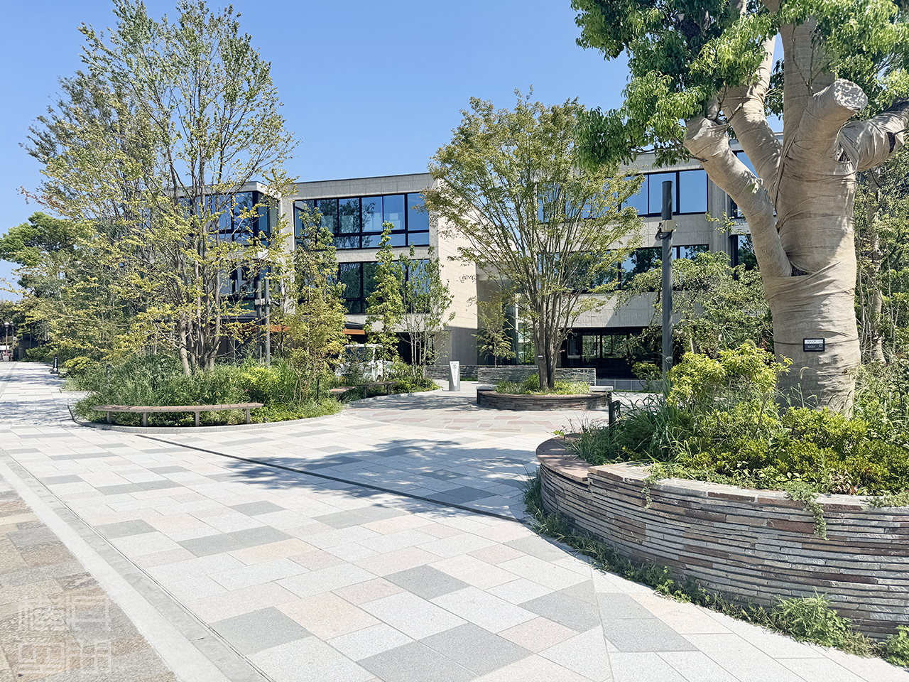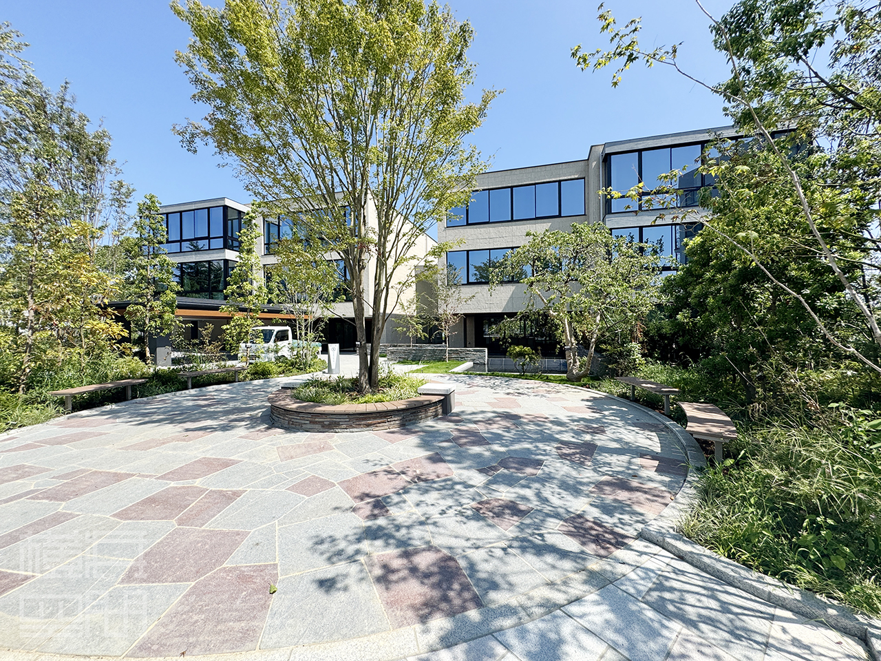四季を映す前庭が訪れる者を出迎え、ゆとりある広場とアプローチが街並みに潤いを添える。